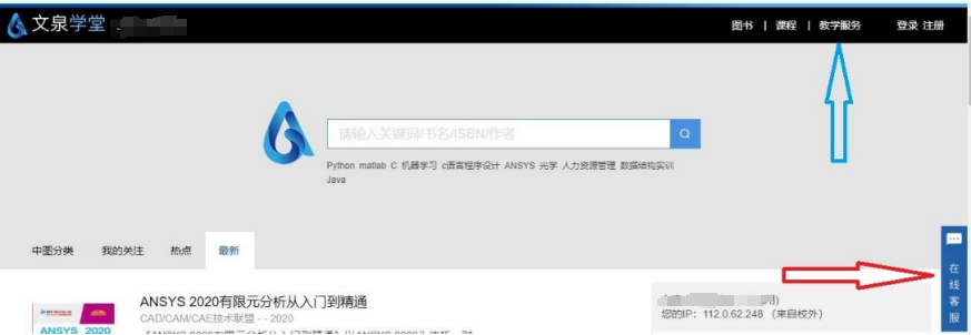 教师点击首页面右上角“教学服务”按钮,注册认证后即可享受教学服务功能和相关专业教材纸书免费申请赠送服务。
